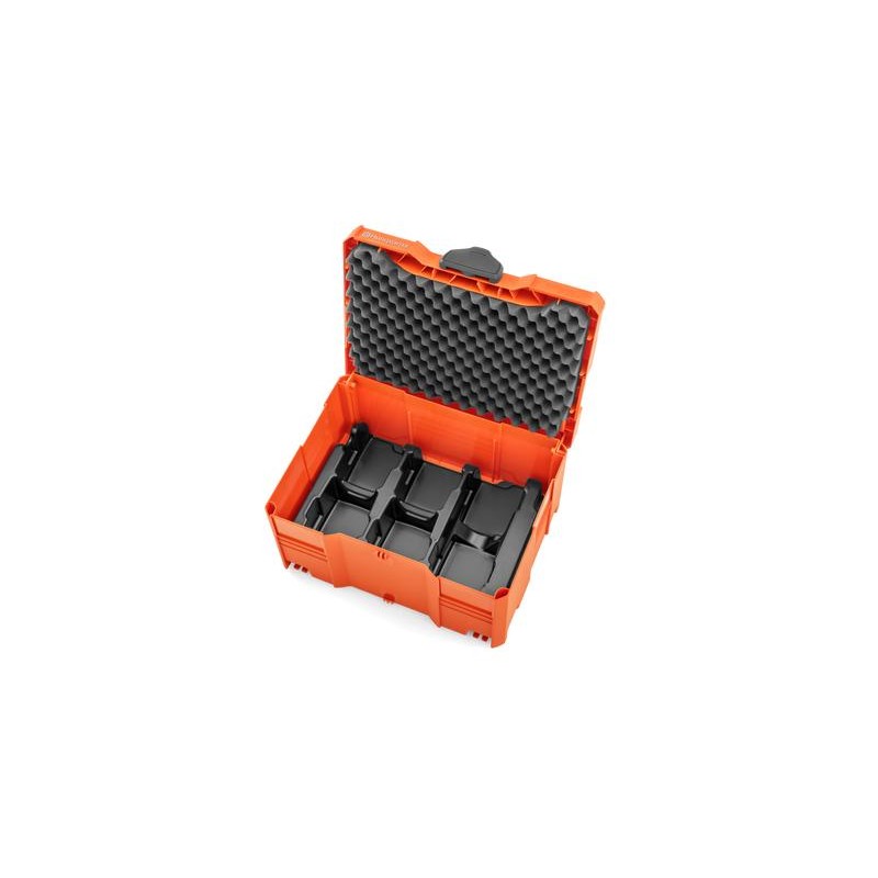 Skrzynka do bezpiecznego transportu i przechowywania akumulatorów, ładowarek i innych akcesoriów Husqvarna. W pełni kompatybilna z systemem Systainer-Box. Wymiary zewnętrzne 210x396x296mm.