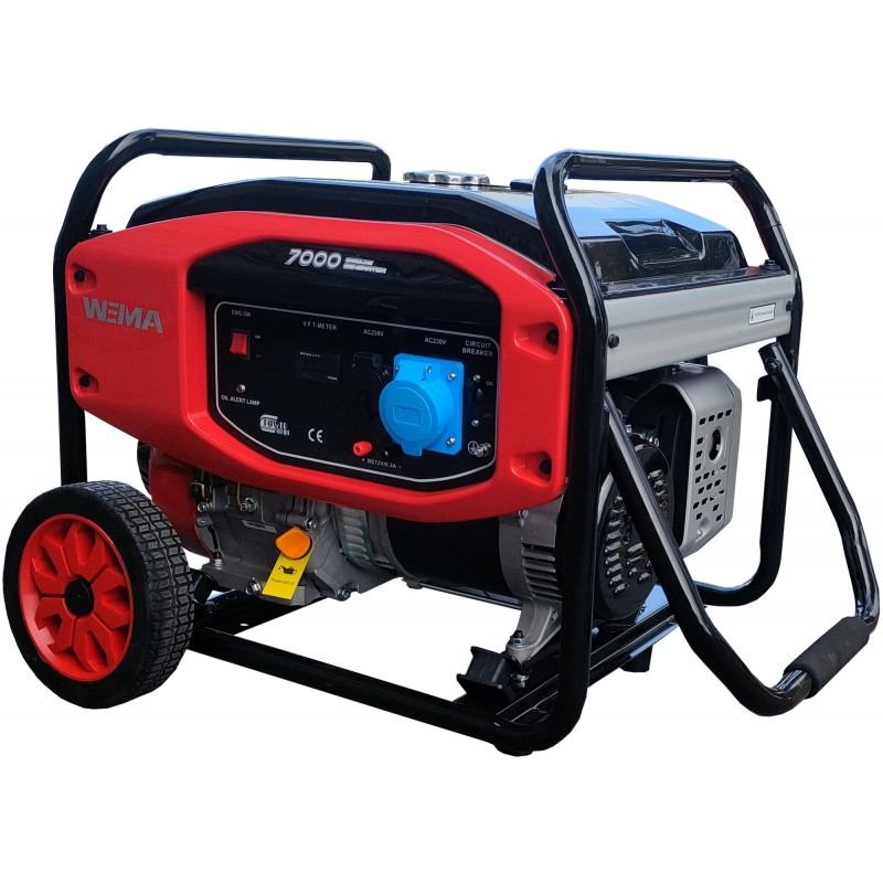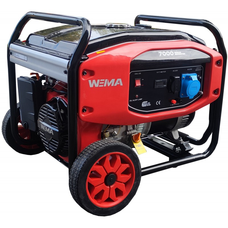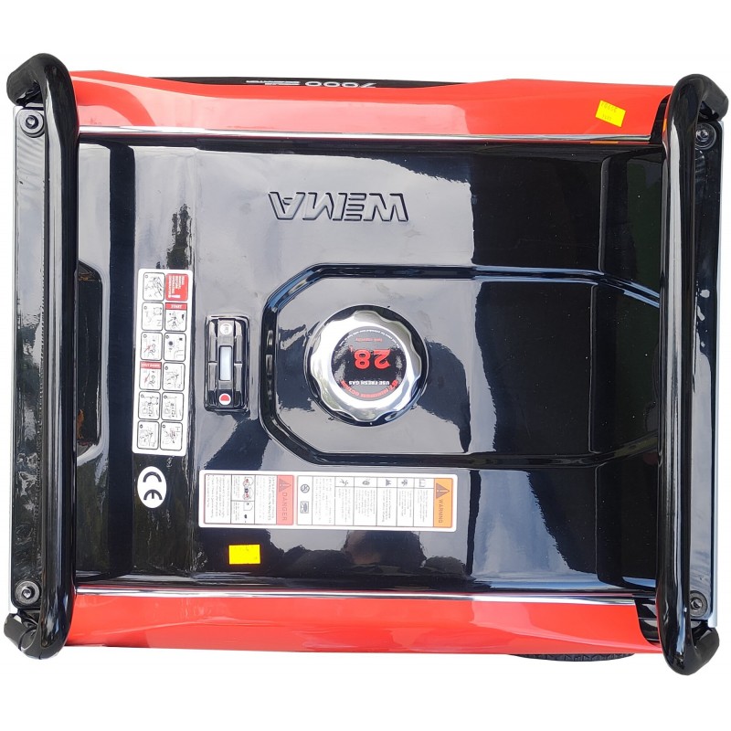 Urządzenie wyposażone zostało we wskaźniki poziomu paliwa i napięcia zasilającego. WM7000 posiada stabilizację napięcia, zabezpieczenie przeciwprzepięciowe i czujnik oleju. Wygodny uchwyt oraz koła ułatwiają transport agregatu w dowolne miejsce. Nadaje się jako zapasowe źródło zasilania dla domów, placów budowy itp.