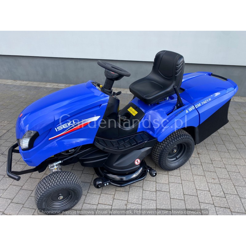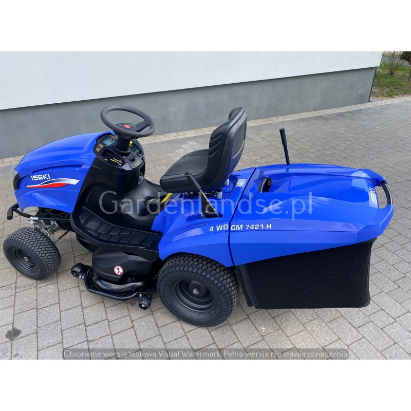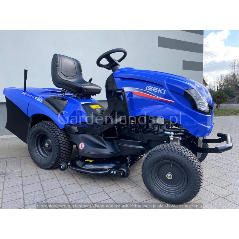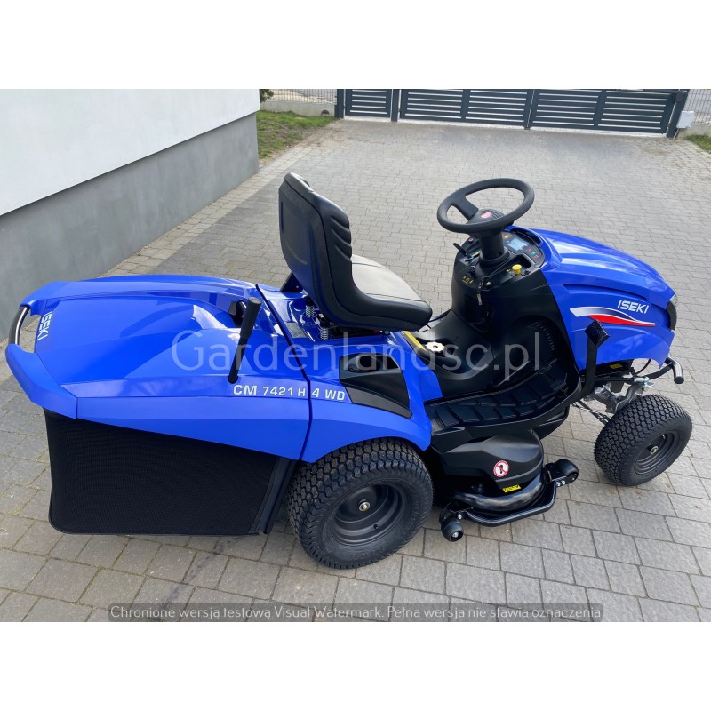 Traktor ogrodowy Iseki CM7421 H 4WD jest zaprojektowany dla właścicieli ogrodów przydomowych ceniących sobie jakość, niezawodność i wytrzymałość. Posiada zróżnicowane wysokości cięcia, pojemne kosze, napęd 4x4 i przekładnie hydrostatyczną. Ergonomiczny fotel oraz kierownica.