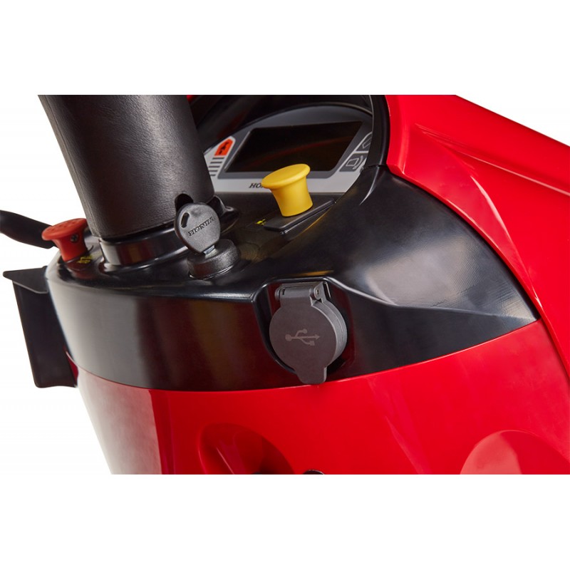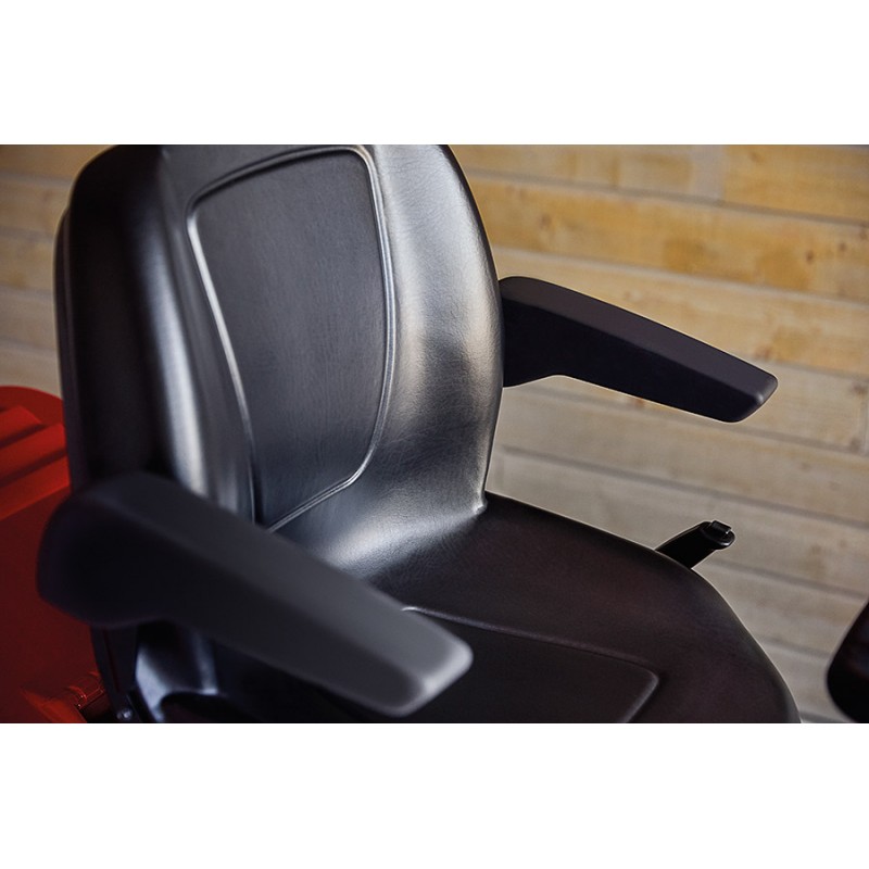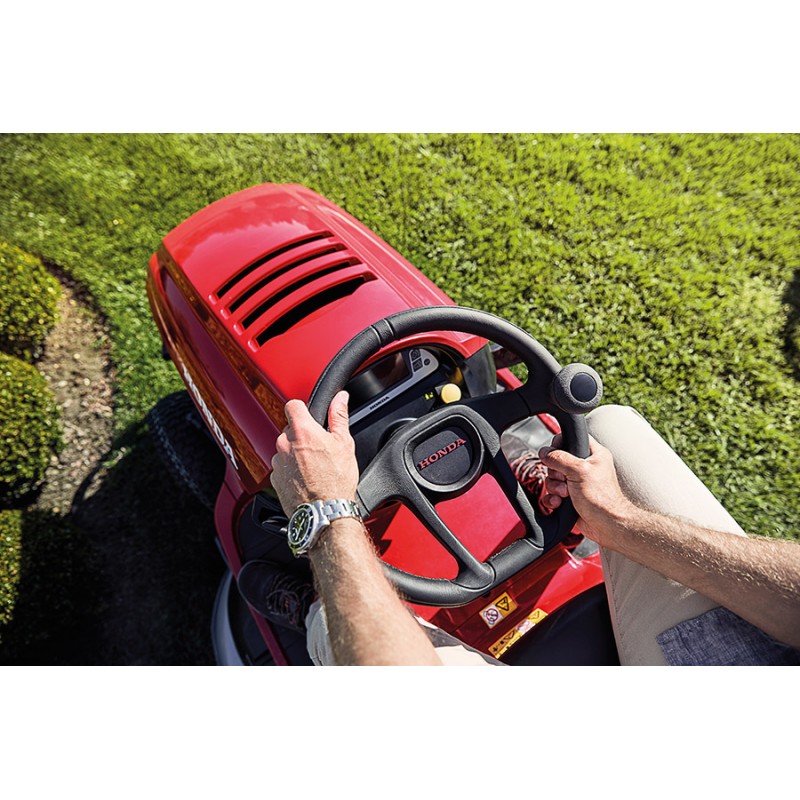 Kosz traktorka wysypywany jest automatycznie po wciśnięciu przycisku przy kierownicy. Maszyna posiada silnik Honda GCV 530 z elektrycznym rozrusznikiem - 2 cylindrowy; szerokość koszenia 102 cm; 7-stopniową regulację wysokości koszenia od 30 do 90 mm. Włączanie noży elektromagnetyczne, funkcja mielenia trawy uruchamiana jedną dźwignią. Długie koszenie trawy na prostych odcinkach ułatwia tempomat.