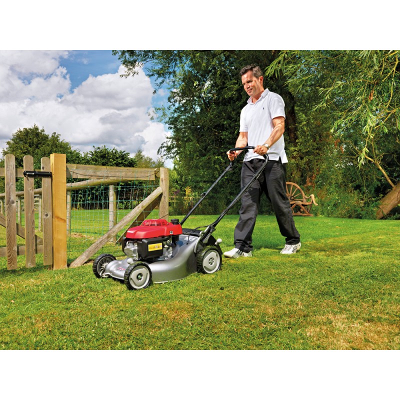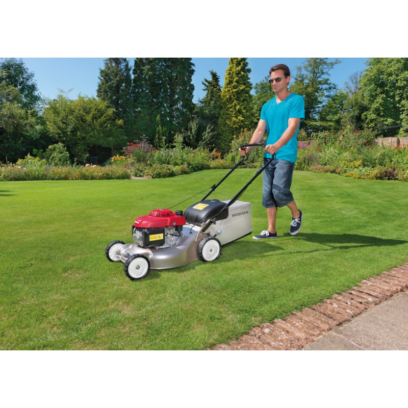 Kosiarka Honda HRG 416C SKEA zapewnia sprawne koszenie i łatwą obsługę. Precyzyjne ustawienie wysokości koszenia, zgodnie ze sztuką koszenia, zapewnia skokowy system regulacji ustawienia noża (na każdej osi) w zakresie 20 – 74 mm. Kosiarka jest bardzo cicha i ekonomiczna. Bezpieczeństwo zapewnia HONDA BLADE-BRAKE® - specjalna blokada bezpieczeństwa, zatrzymująca nóż tnący już po 1/2 obrotu.