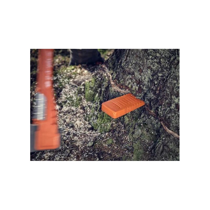 Ten niezwykle wytrzymały klin do obalania jest wykonany z tworzywa sztucznego odpornego na uderzenia. Klin ma ukształtowaną powierzchnię tylną dla doskonałego uderzenia i poprzecznych rowki dla lepszej przyczepności w zamarzniętym drewnie. Klin pomaga drzewu opadać w kierunku podcięcia, faktycznie podnosząc drzewo w tym kierunku. Służy do zapobiegania przyciśnięciu pilarki przez drzewo (lub odchyleniu się do tyłu na pilarce) podczas wykonywania cięcia do tyłu. Może być również używany do przebijania drzew już na ziemi.