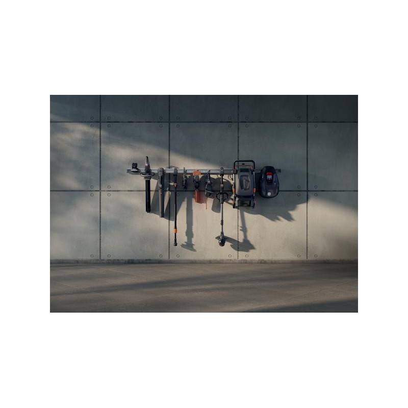 Dzięki tej montowanej na ścianie szynie do przechowywania wygodnie i schludnie uporządkujesz swoje narzędzia ogrodowe na ograniczonej przestrzeni. Każda szyna ma szerokość 640 mm, więc w miarę powiększania się kolekcji narzędzi wystarczy dodać kolejną. Aluminium o grubości 3 mm gwarantuje, że Twoje miejsce do przechowywania będzie tak samo wysokiej jakości i wytrzymałe, jak Twoje narzędzia. Każdy produkt Aspire™ jest wyposażony w dostosowany do indywidualnych potrzeb hak pasujący do szyny. Kompatybilna również z zestawem haków do przechowywania Husqvarna Aspire™ do wszystkich narzędzi ogrodniczych, takich jak narzędzia ręczne, wąż do wody lub miotła. W zestawie znajdują się śruby, plastikowe zaślepki, które umożliwiają montaż szyny i schludny wygląd.