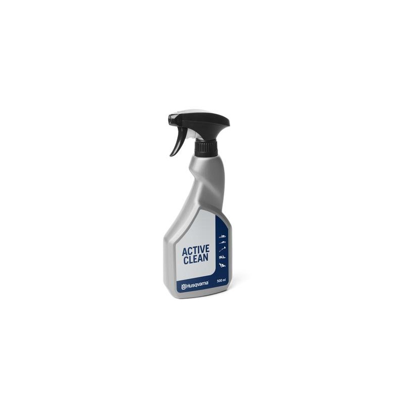 Płyn do czyszczenia Husqvarna Active Clean niezawiera fosforanów i ulega biodegradacji. Skutecznie czyści pilarki, maszyny ogrodnicze, filtry powietrza i obuwie.